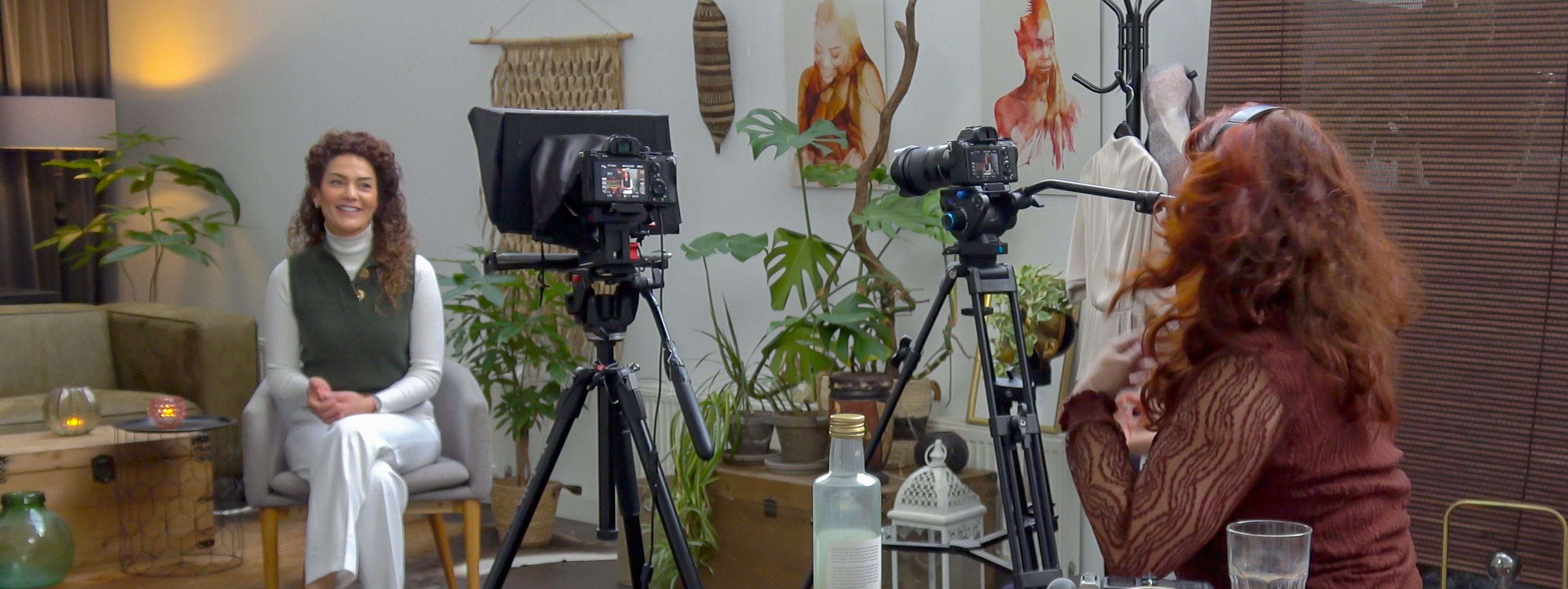 We filmen in mijn professionele studio op de Elementenstraat in Amsterdam. Een rustige, creatieve locatie waar jij je meteen op je gemak voelt en waar alle professionele apparatuur klaarstaat.